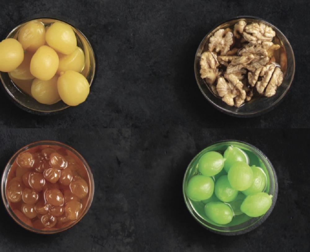 Sırnik, yağ, zeytun, çiyələk mürəbbəsi,...