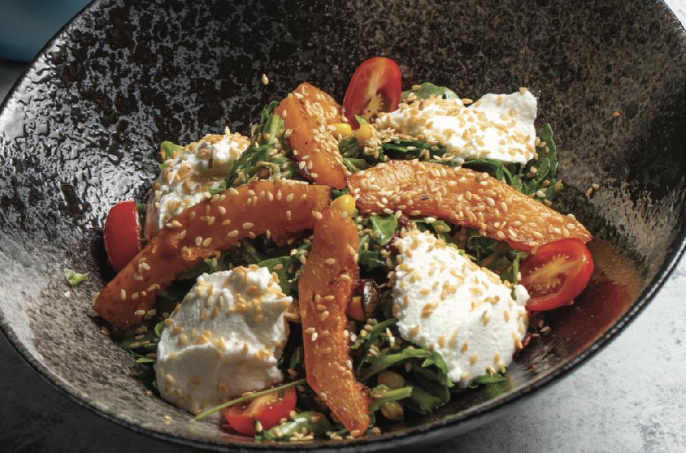 Rukola, hisə verilmiş toyuq əti, balqabaq tu...