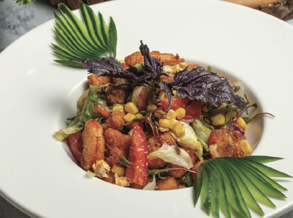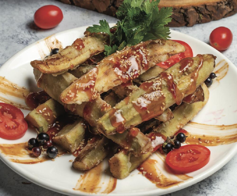 Badımcan, kraxmal, şirin çili sousu, barbuk�...