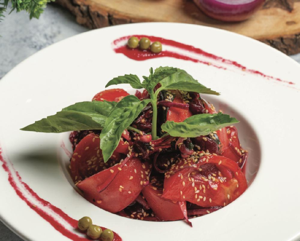 Göyərti, özəl spesial sous, ceri pomidor, k...