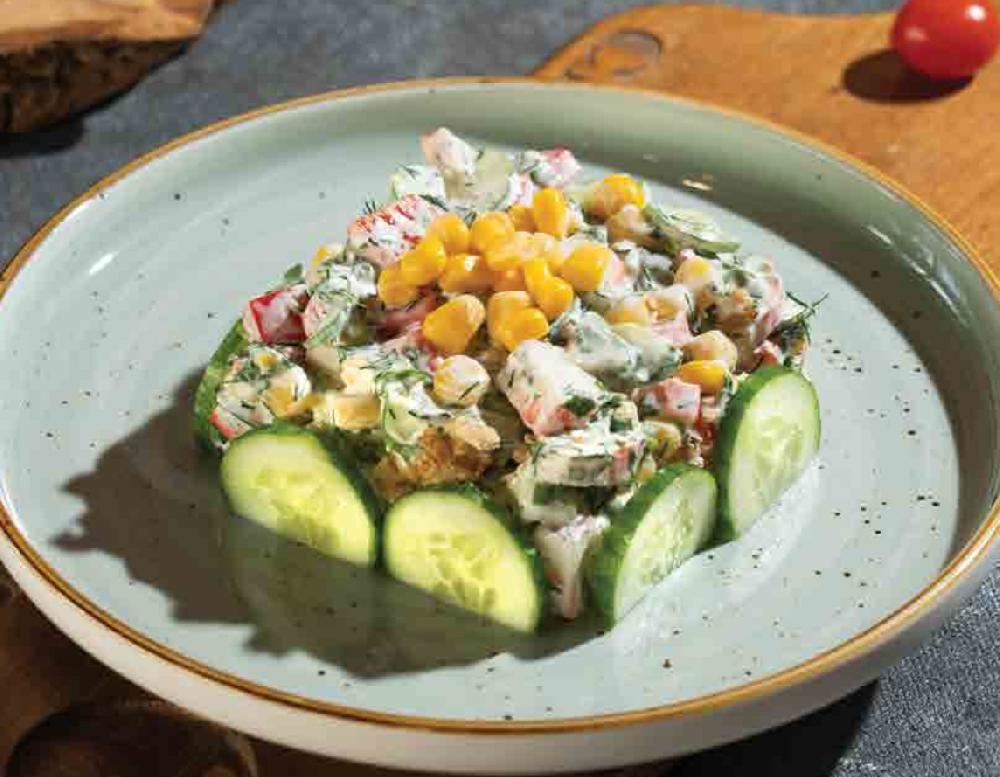 Krab, rəngli bibər, kukuruz, xiyar, şüyüd,...