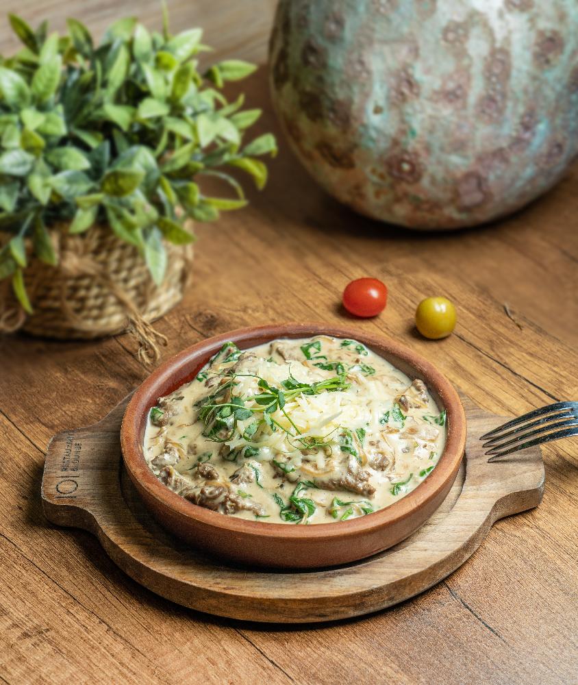 Can əti, ispanaq, qaymaq, parmezan pendiri, so...