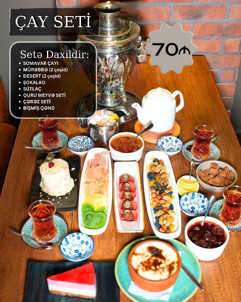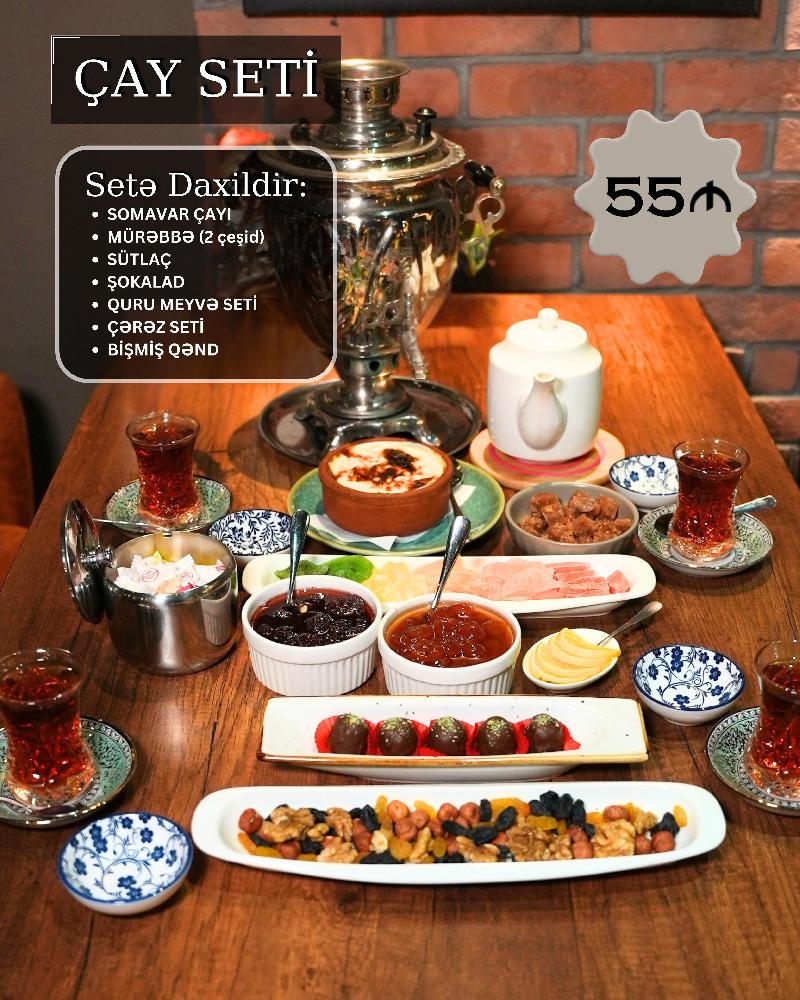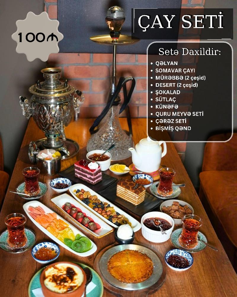 1 qəlyan (çaşka), 1 samovar çay, 1 mürəbb...