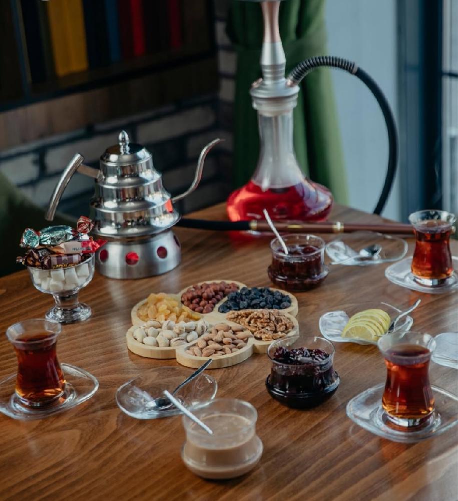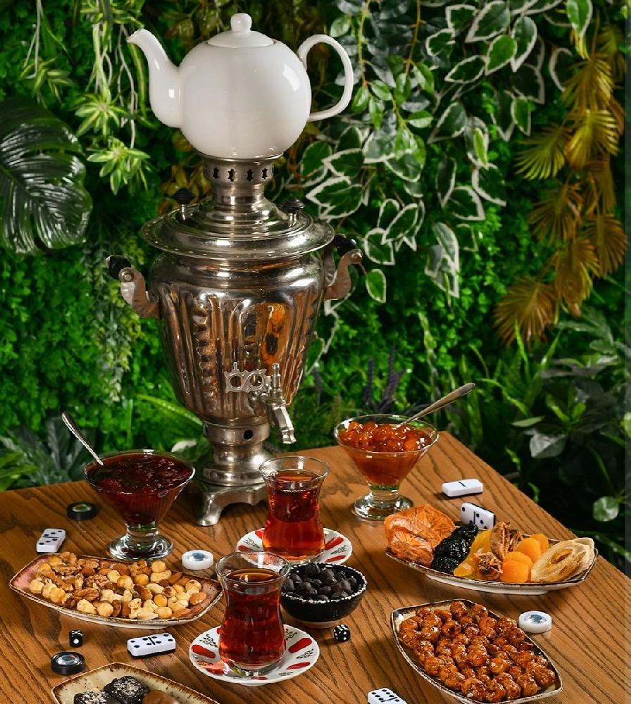 2 qəlyan, limitsiz çay, 1 mürəbbə, 1 çə...