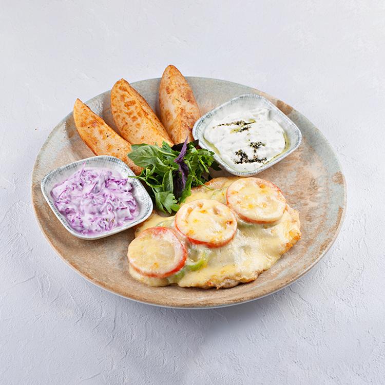 Sobada bişmiş kiçik kartoflar, rəngli bibərlər, soğan və xüsusi ədviyyatlar