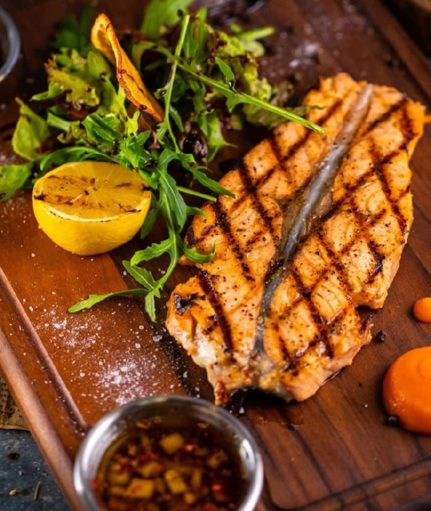 salmon fillet, fried spinach, cooking cream, s...