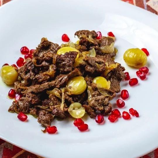 Lamb whole, onion, mashed pickle, pomegranate s...