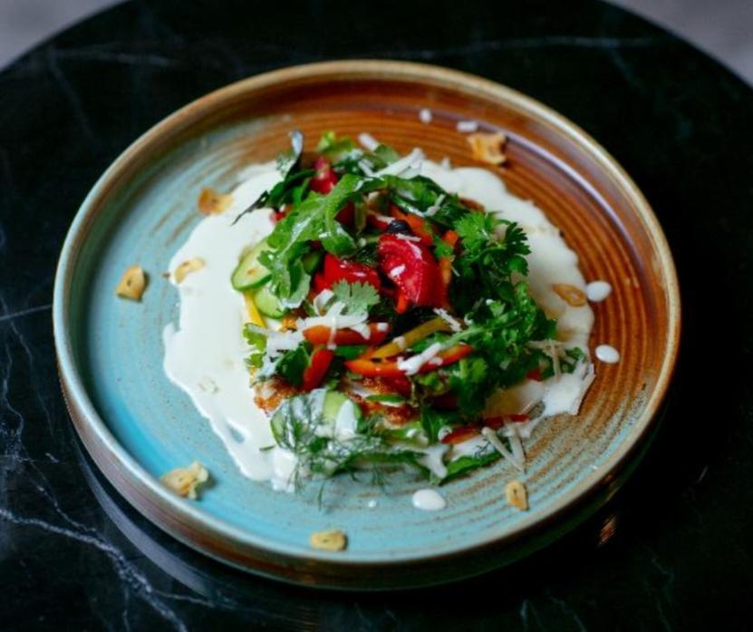 cheese sauce, lettuce iceberg, tomato, cucumbe...