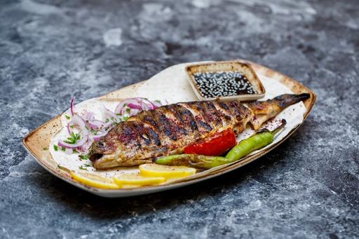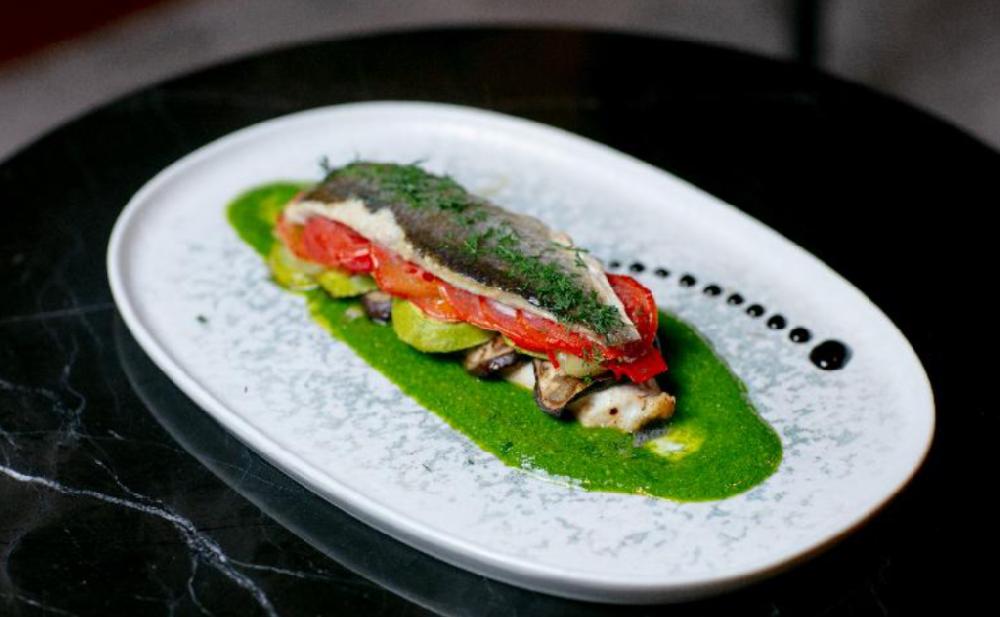 sea bass fillet, bell peppers, tomato, zucchini...
