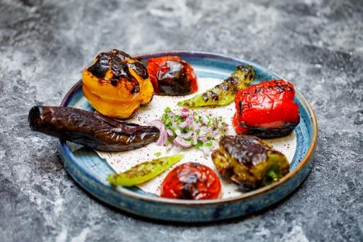 ribeye, mushroom, bell peppers, tomato, zucchi...