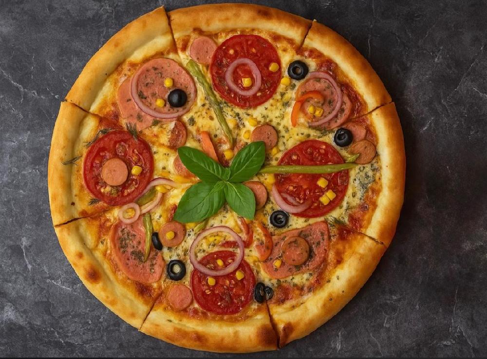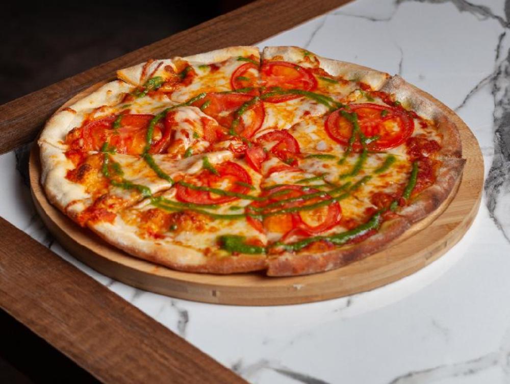 pizza dough, pizza sauce, tomato, mozzarella, ...