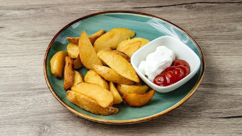 Sobada bişmiş kiçik kartoflar, rəngli bibərlər, soğan və xüsusi ədviyyatlar
