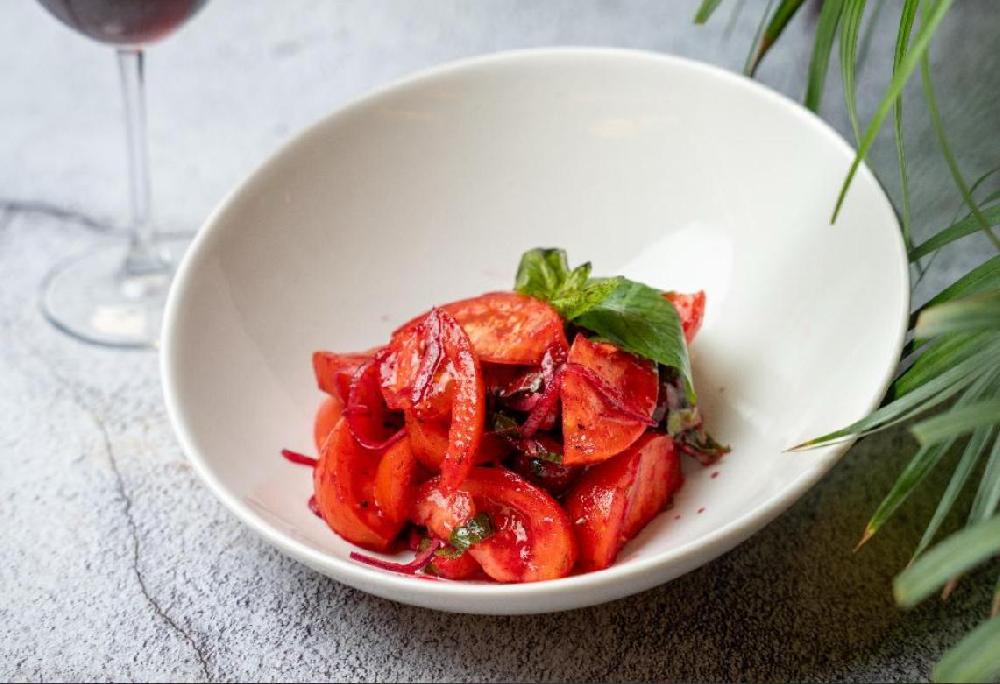 marinated cherries, tomatoes,greens,red onion,w...