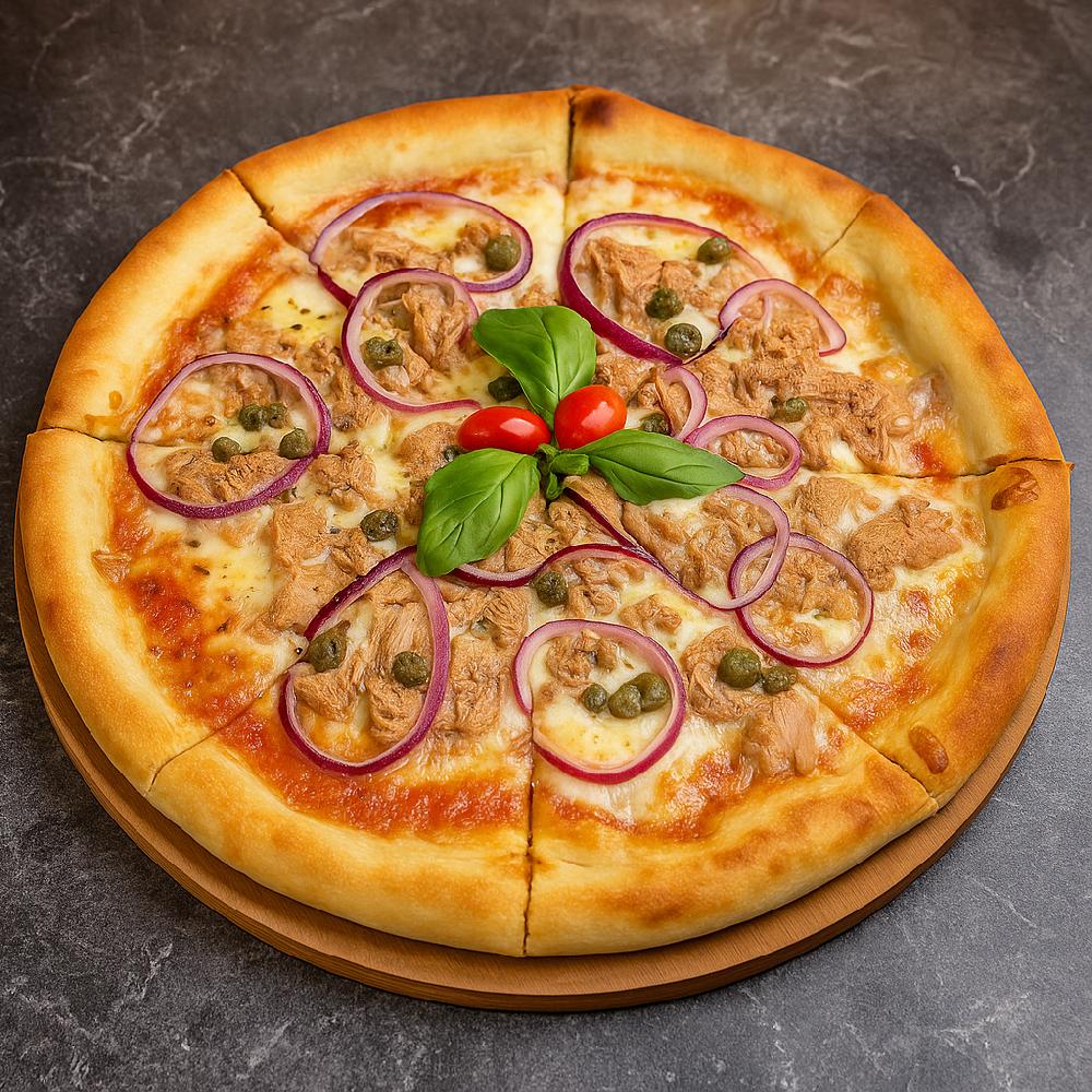 Tuna in tin,Red onion,Pizza dough,black pepper,...