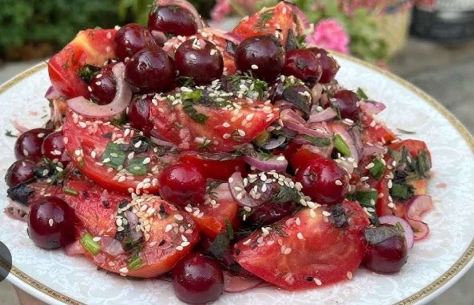 Veal, cherries, cream, cinnamon, pomegranate sa...
