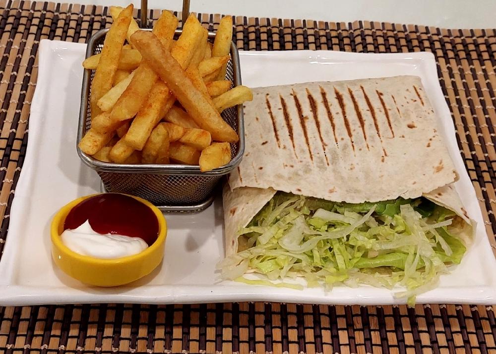 Chicken fillet, tortilla lavash, tomato, pickle...