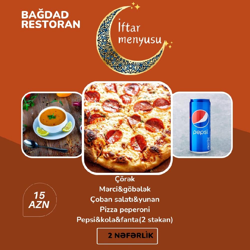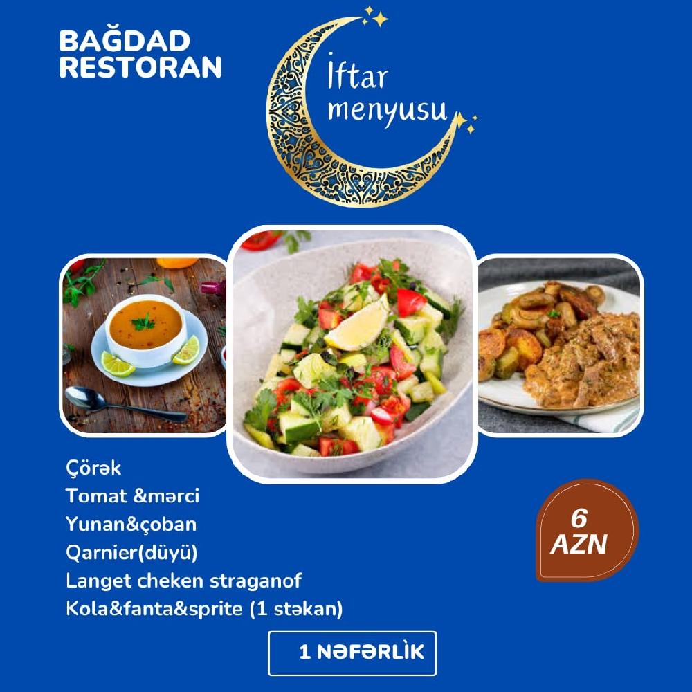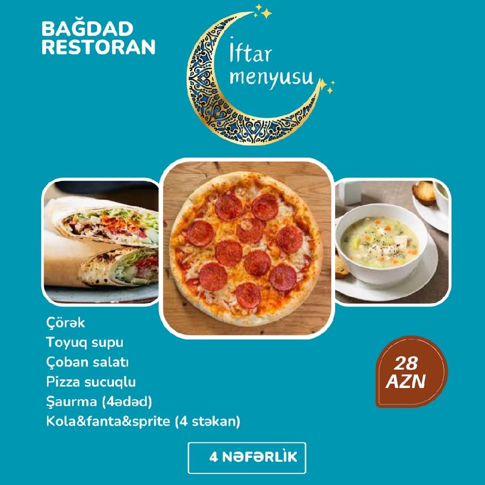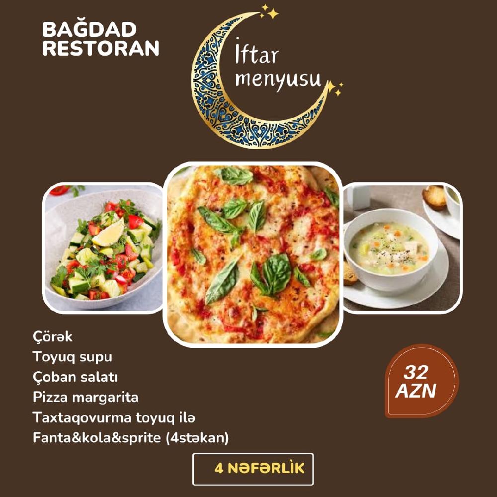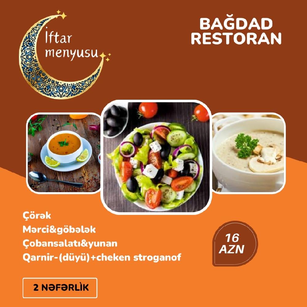 Əziz dostlar Gəncəlilər və Gəncəmizin qonaqları ayın 18 zi axşam saat 18:00 da açılışı olacaq Bağdad restoranında sizi görməkdən məmnun olarıq. Ləziz fasfood yeməklər Çay dəzgahı Desertlər Zövqə uyğun Qəlyanlar Və daha nələr nələr sizin xidmətinizdədir.