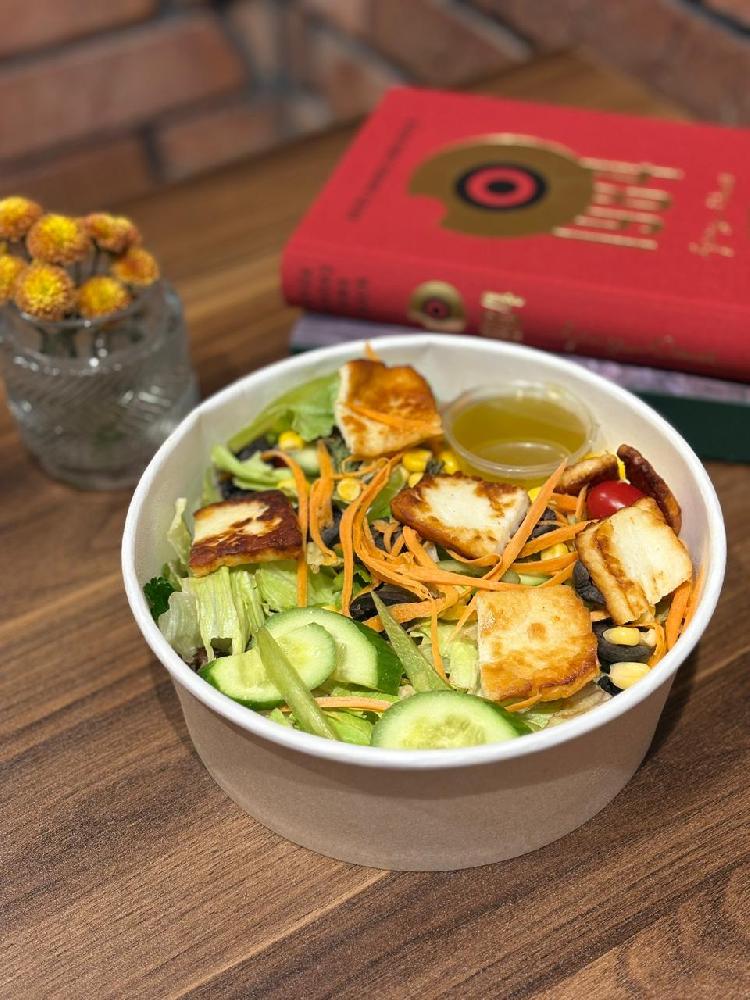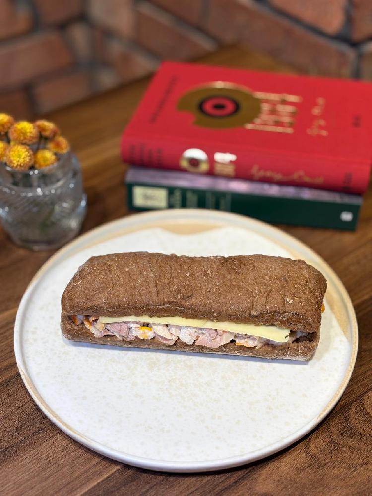 Qəhvəyi çiabata çörəyi, italyan salatı, ...