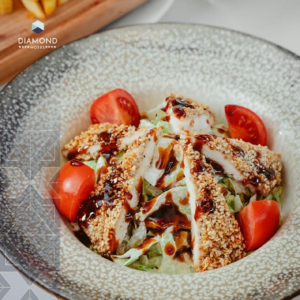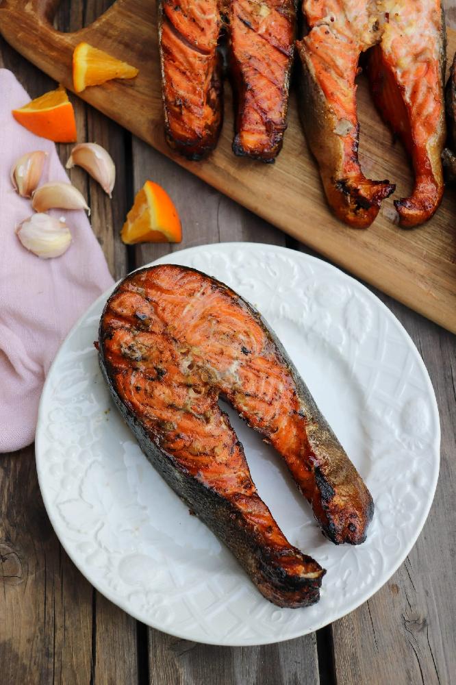 qızardılmış salmon.kelem . kök . qarğıdalı