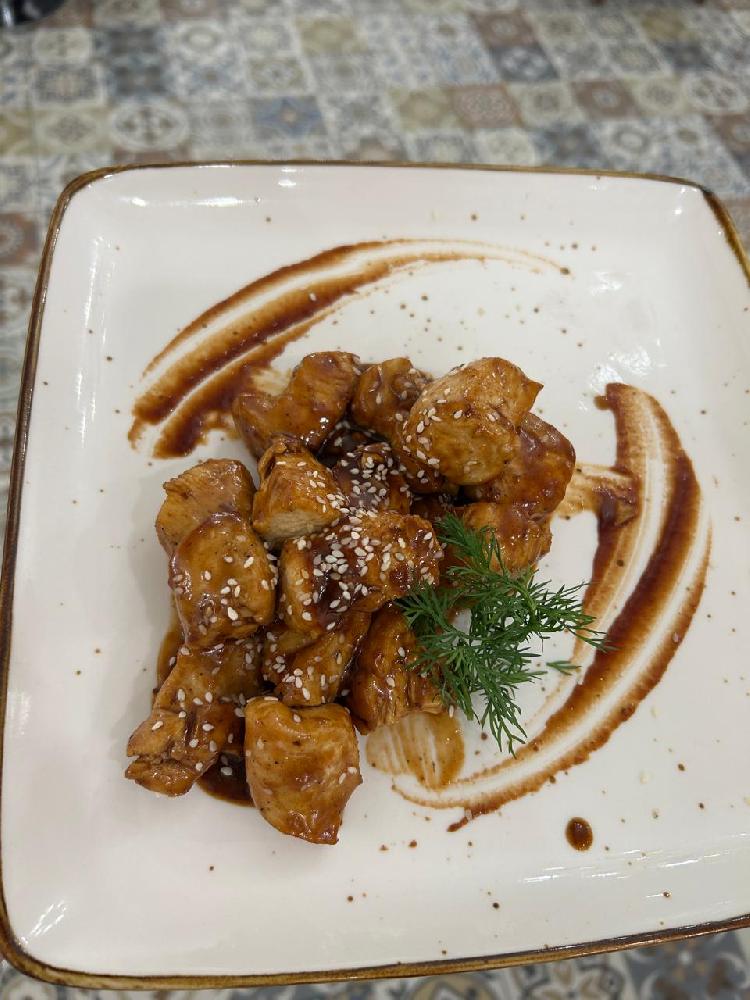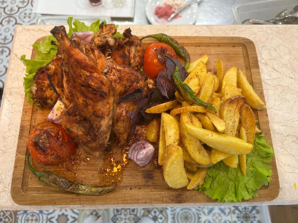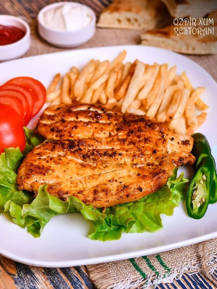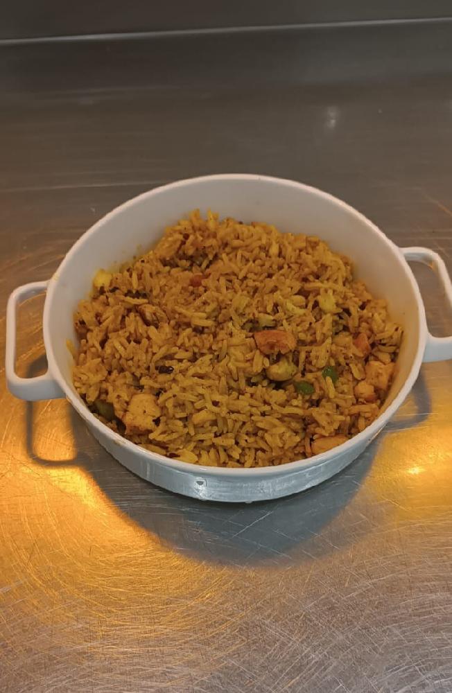 Toyuq, düyü, sogan, aci biber, xüsusi ədviy...