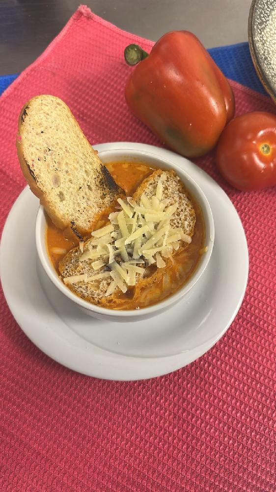 Soğan, bibər, pomidor, sarımsaq, parmezan