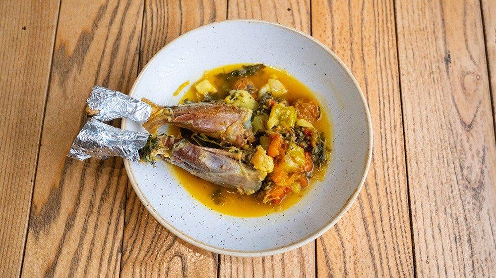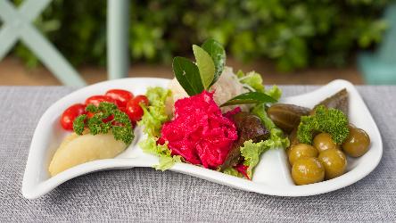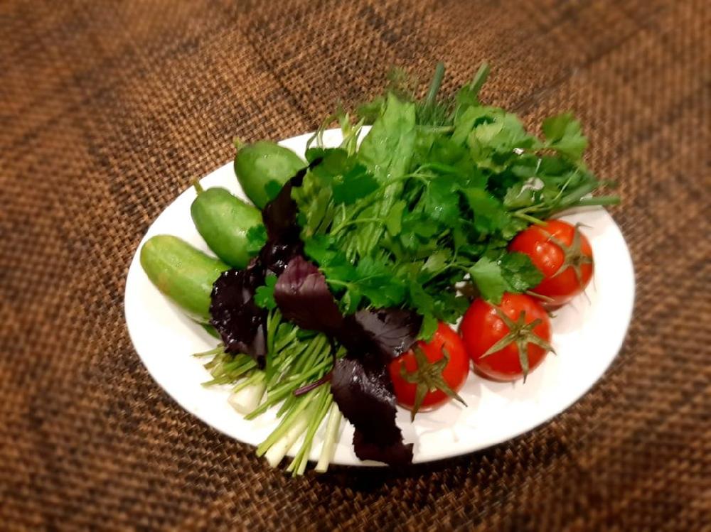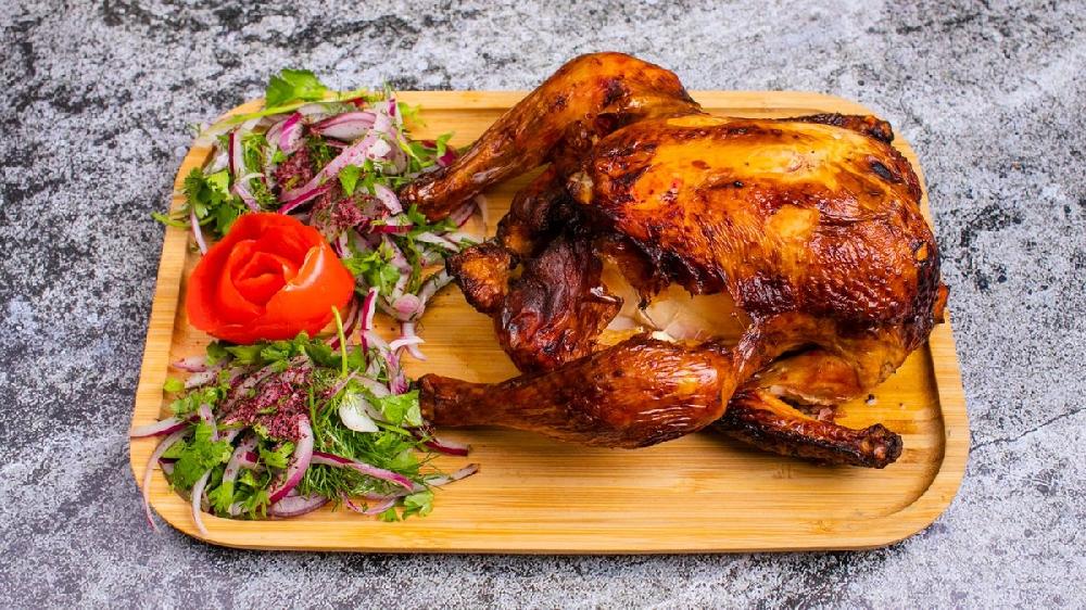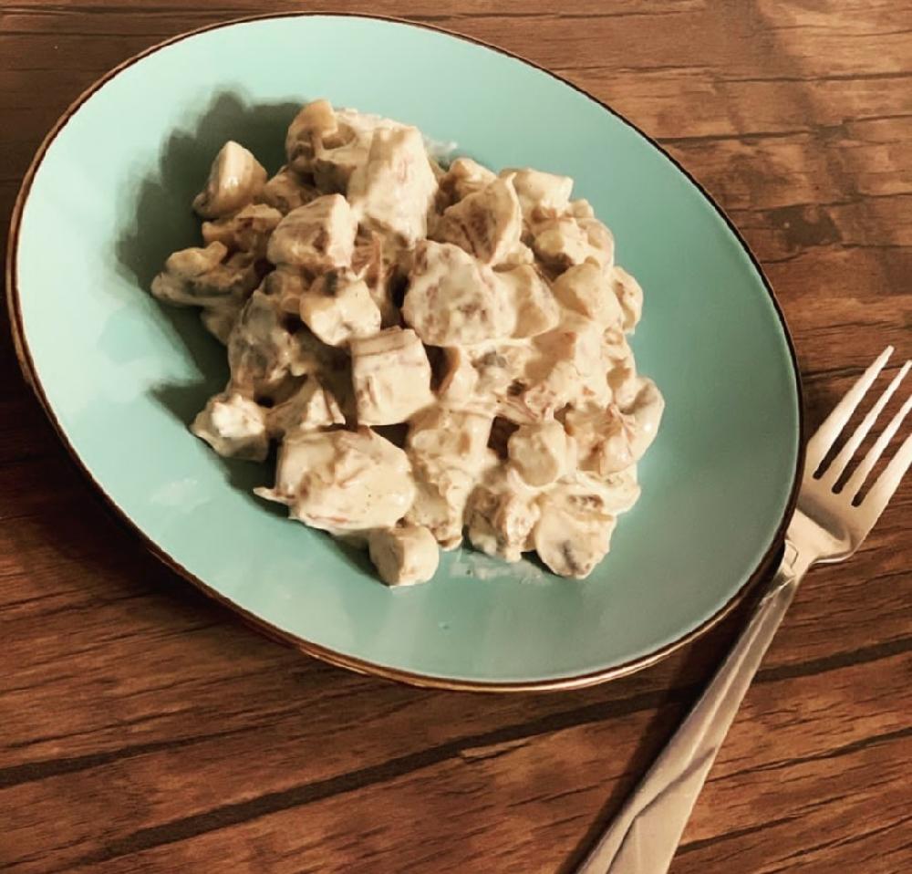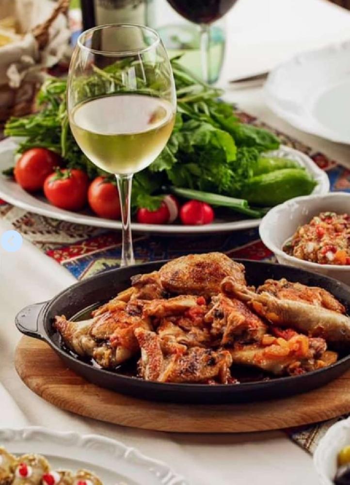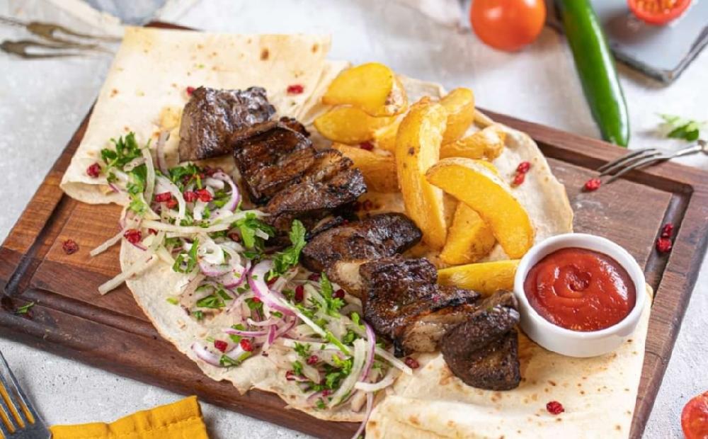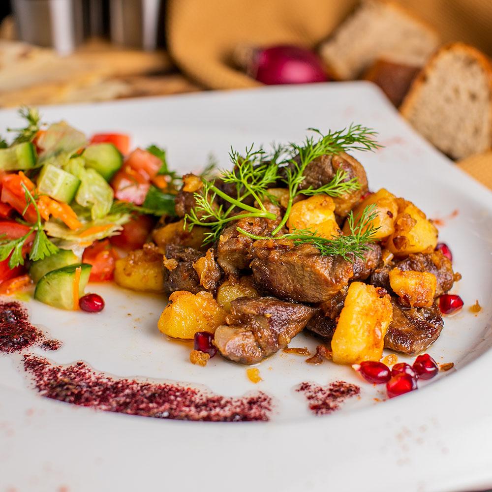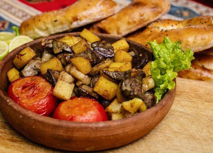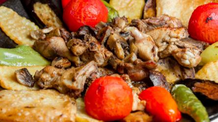 Sobada bişmiş kiçik kartoflar, rəngli bibərlər, soğan və xüsusi ədviyyatlar