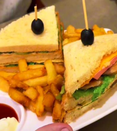 2 Club sandviç, 2 fri kartof, 2 çoban salatı...