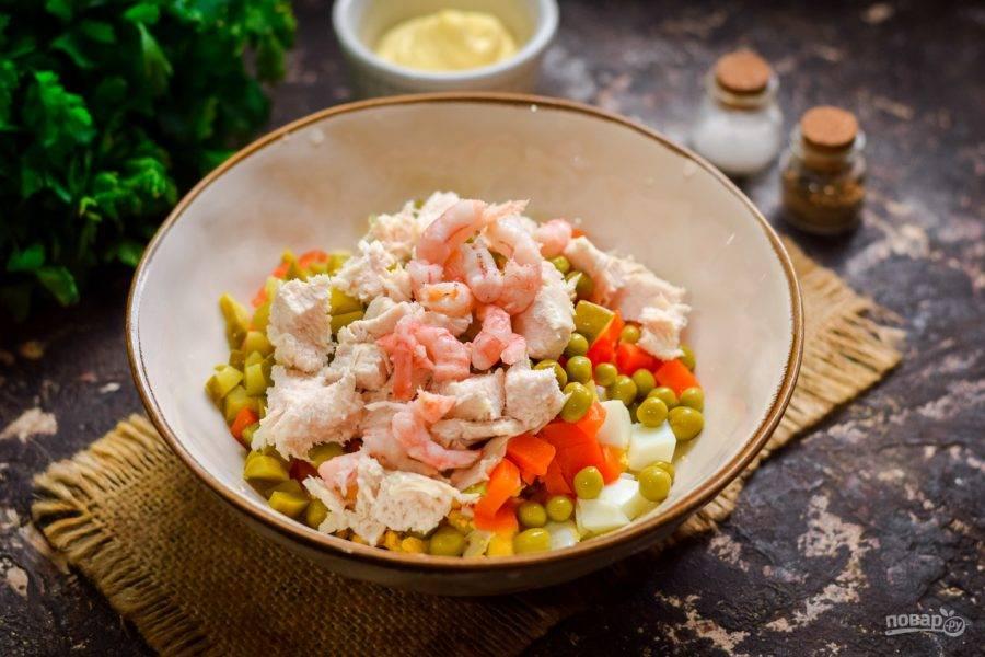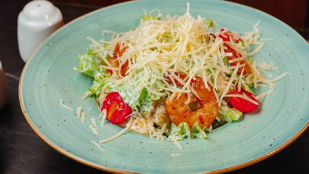 Krevetka, ayzberq, pomidor, suxarik, sous