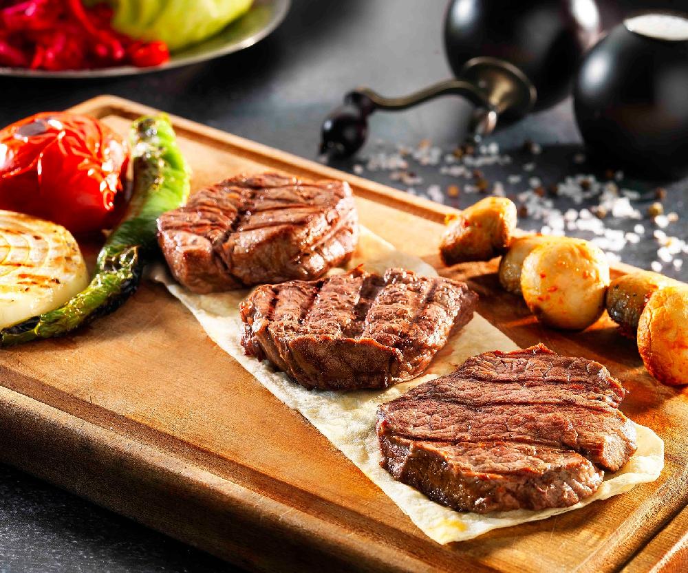 1 nəfərlik. Pirzola, mini steyk, köftə, izq...