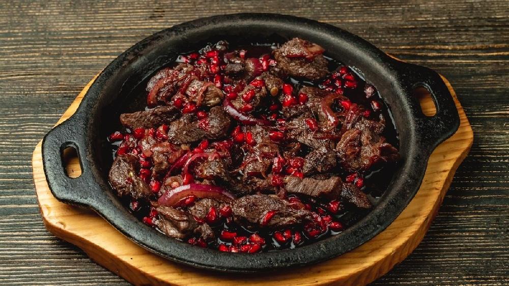 2 nəfərlik. Quzu əti, nar turşusu, alça tu...