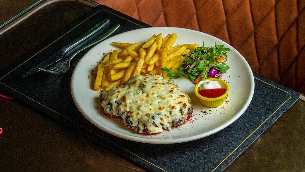 Qıyma ət, pendir, göbələk