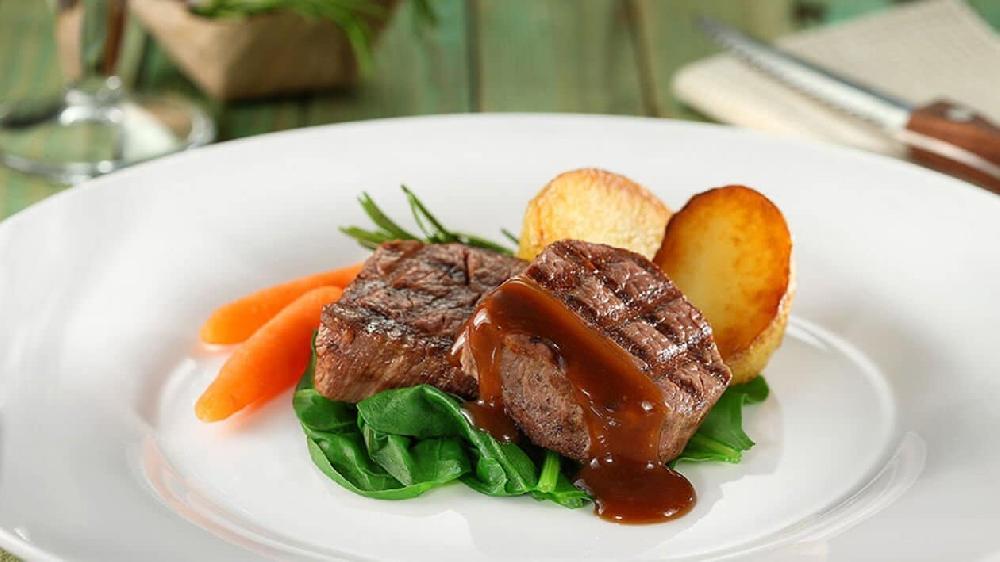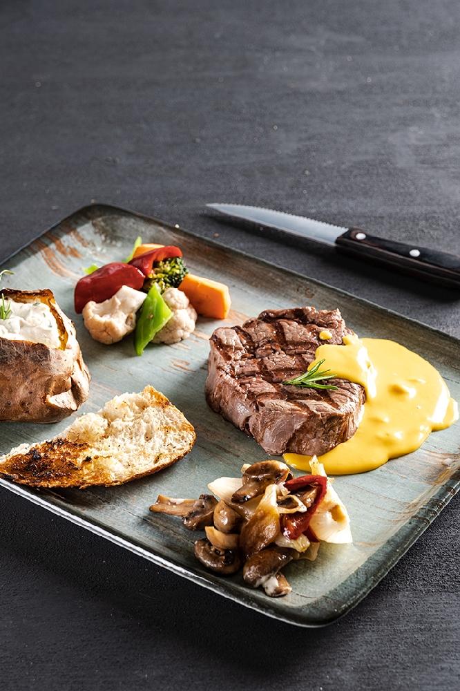 Antrikot, püre, özəl portağal sousu