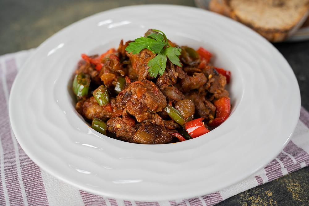 1 nəfərlik. Mal əti, göbələk, bibər, soğan