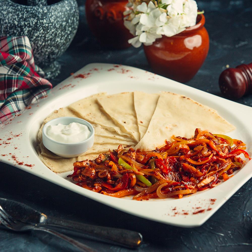 1 nəfərlik . Toyuq əti, bibər, pomidor, sou...