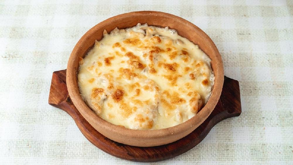 Toyuq, göbələk, pendir