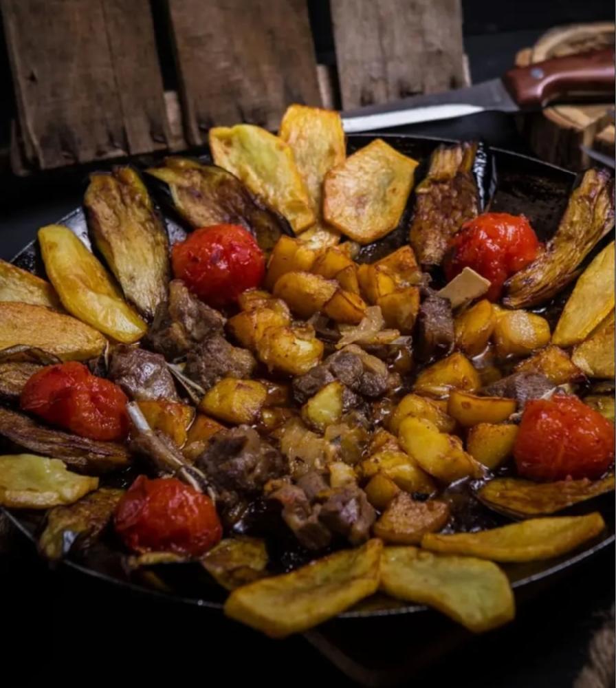 4 nəfərlik. Quzu əti, tərəvəzlər, göbə...