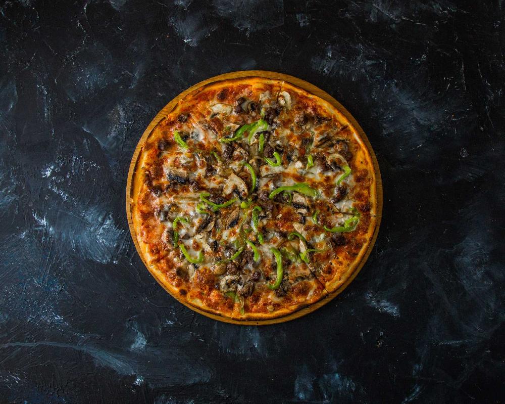 Kolbasa, toyuq, göbələk, zeytun, pomidor, bi...