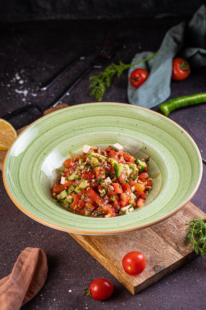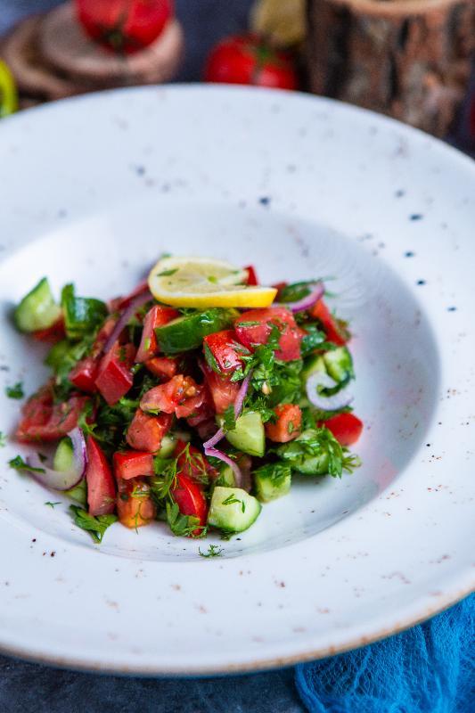 Pomidor, xiyar, feta pendirı, zeytun, rəngli ...