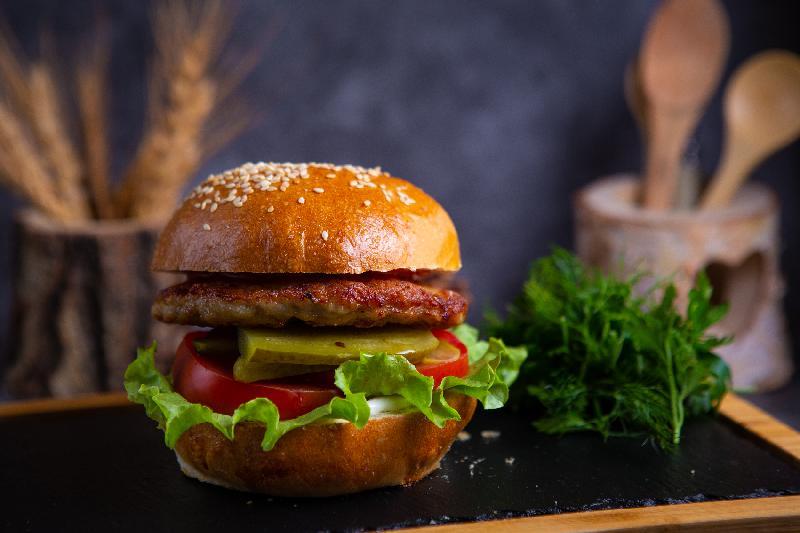 Burger çörəyi, toyuq filesi, turşu xiyar, p...