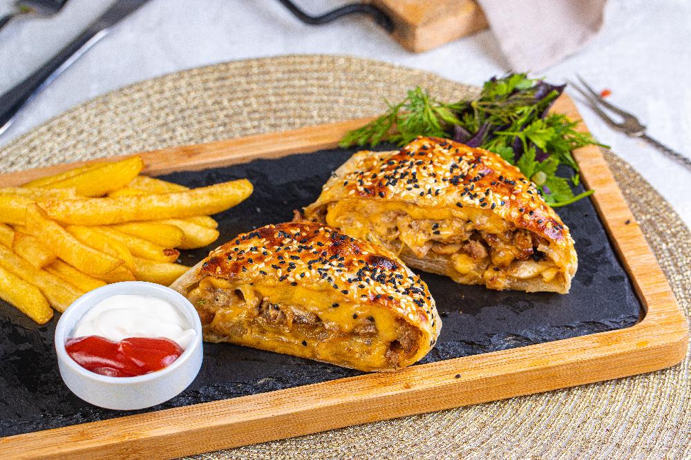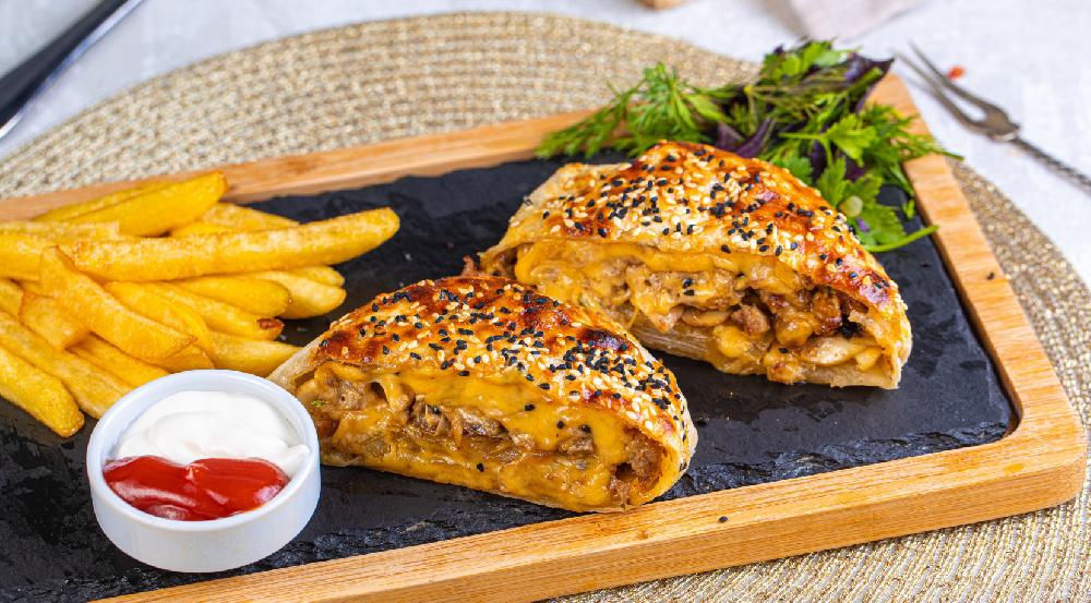 (Toyuq əti, karamelize soğan, lavaş, göbəl...