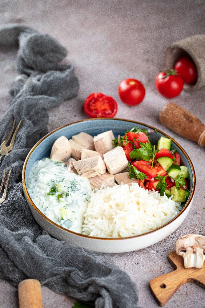 Toyuq filesi, aysberq kahı, kahı, pomidor çe...