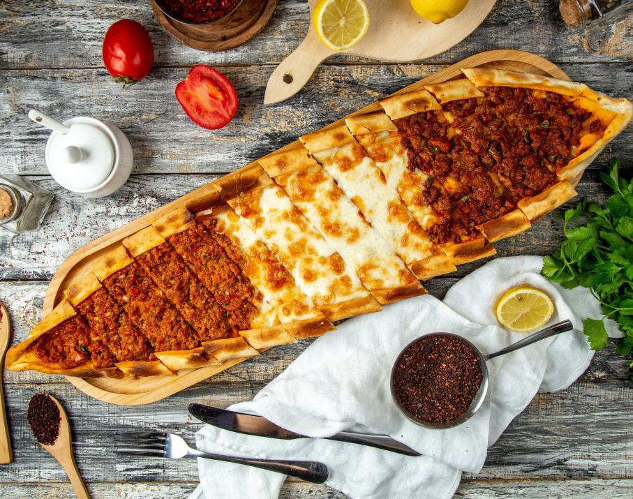 (Sucuklu, karamelize soğan, göbələk, lavaş...