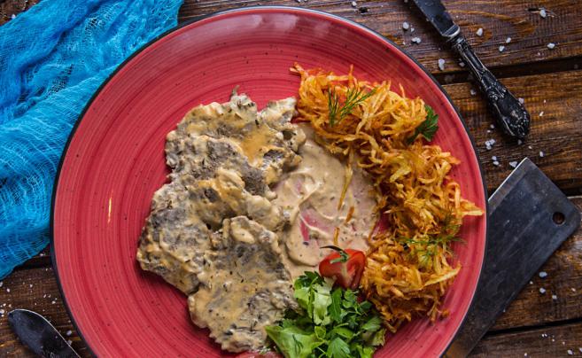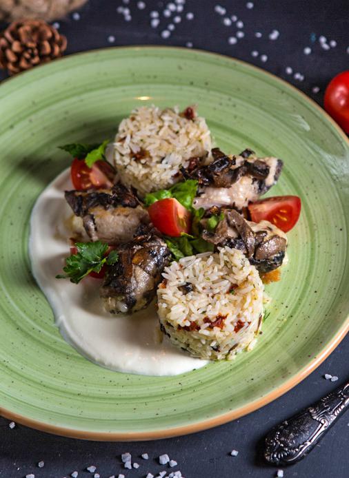 (Dana əti, karamelize soğan,göbələk, lava�...