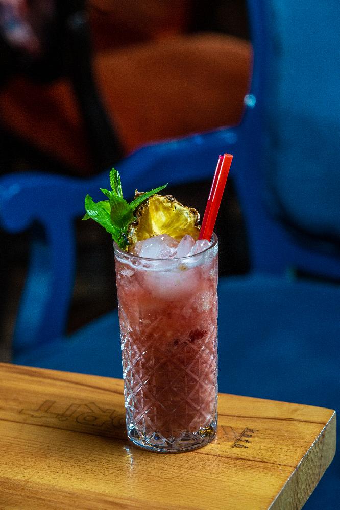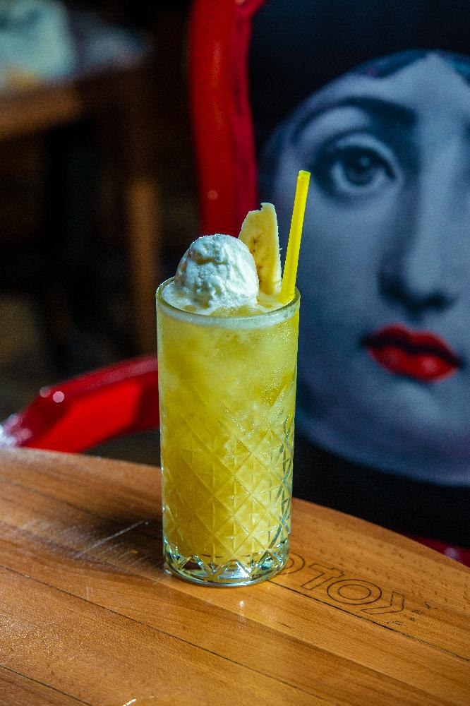banan meyvəsi , ananas şirəsi , blue curacao...