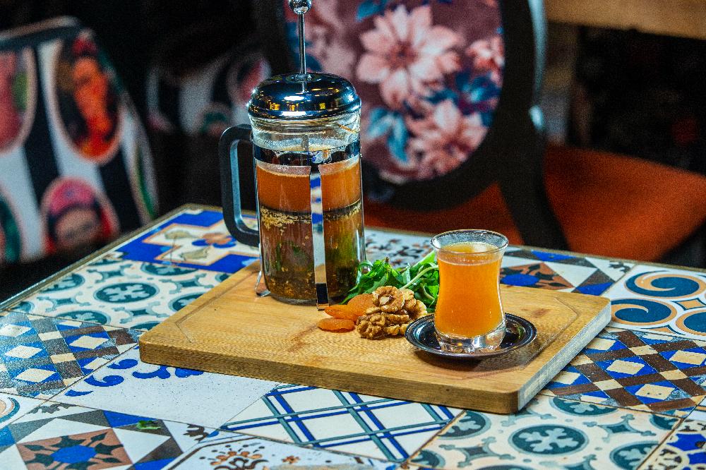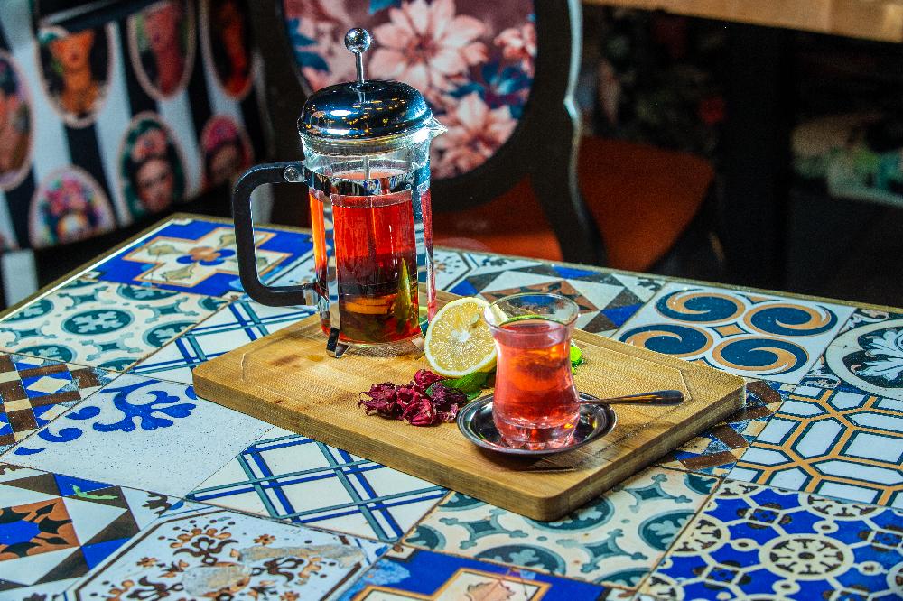 Hibiscus çayı, gül şirəsi , çiyələk əs...