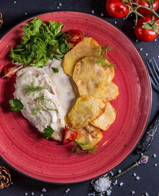 toyuq filesi,sogan,gobelek,qaymaq,turşu xiyar,...