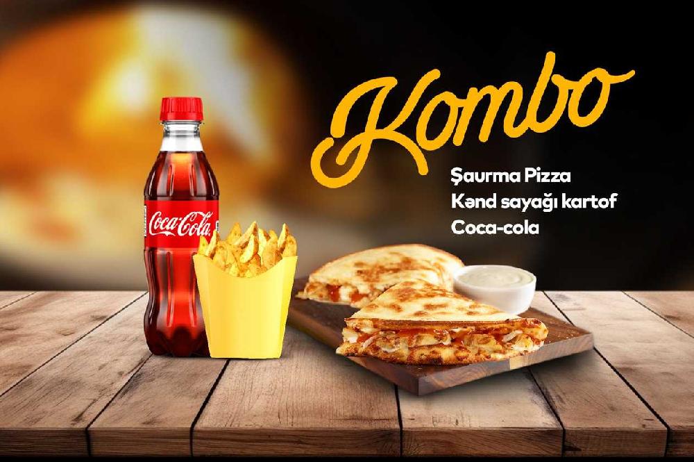 Şaurma pizza, kənd kartofu, coca-cola 300 ml.