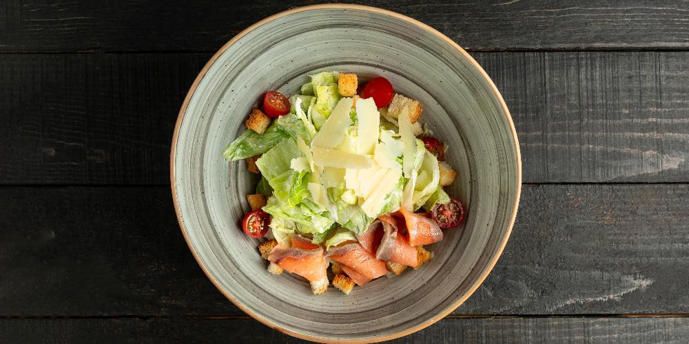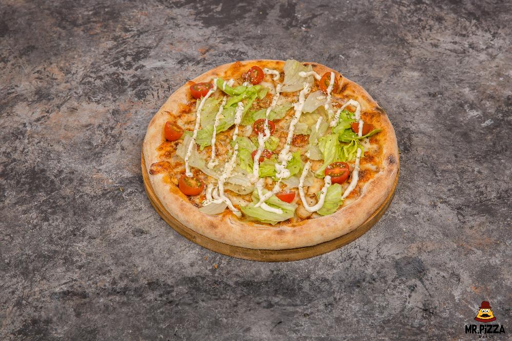 Sezar sous, toyuq file, ayzberq, parmezan, pomidor