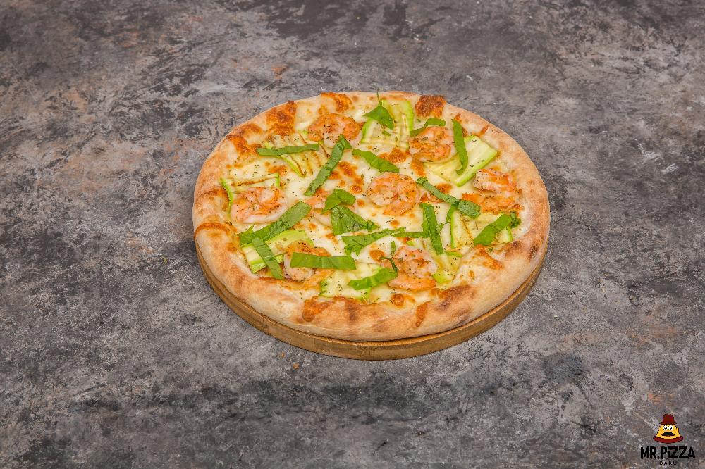 Ağ sous, mozarella pendir, kral krevetka, ispa...