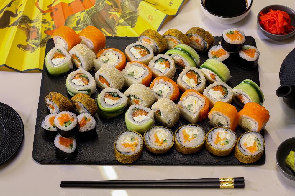 Düyü, nori, xiyar, pendir, balıq, küncüt